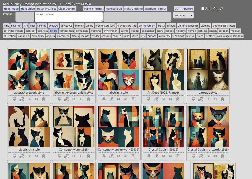 Midjourney Prompt Inspiration,T. L. Ford的这个Midjourney提示工具是一个广泛的提示生成器,提供了广泛的选项,帮助你为你的下一个图像生成创建完美的提示。