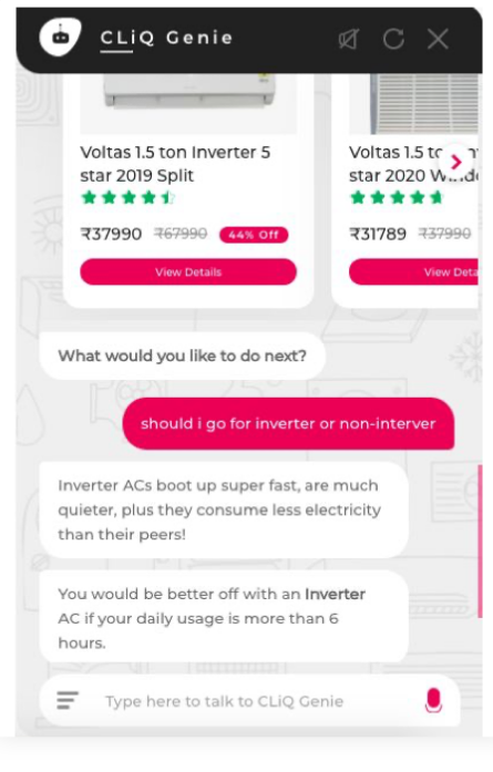 图5:通过解释产品细节,聊天机器人通过NLP进行产品推荐。(Source: Haptik)