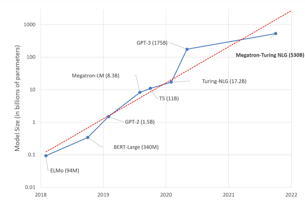 从图3可以看出,我们在2018年有处理不到1亿个参数的模型(这已经很了不起了)。NLP模型现在可以解释超过1000亿个参数,这表明发展了1000多倍。3虽然不是所有的组织都使用这样的大模型(他们不应该这样做,这对很多企业来说不是明智的投资),但芯片技术的改进对NLP模型的一般能力有积极的影响。