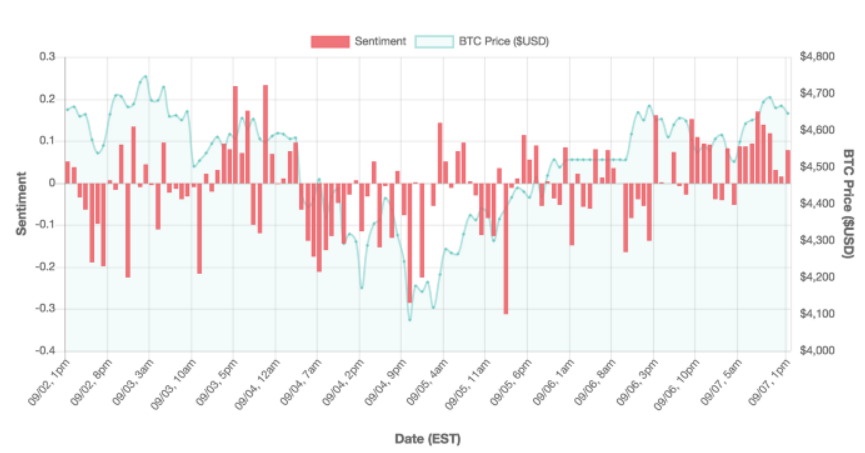 图10:BTC/USD和发生在Twitter上的情绪分析之间的关系。