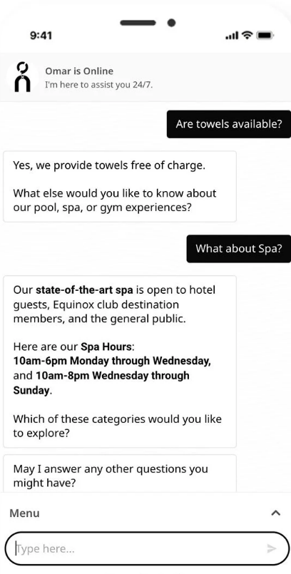 在预订酒店之前,客户希望了解更多关于潜在住宿的情况。人们因此开始询问关于游泳池、晚餐服务、毛巾和其他事情的问题。这些任务可以由NLP驱动的酒店聊天机器人自动完成(见图7)。