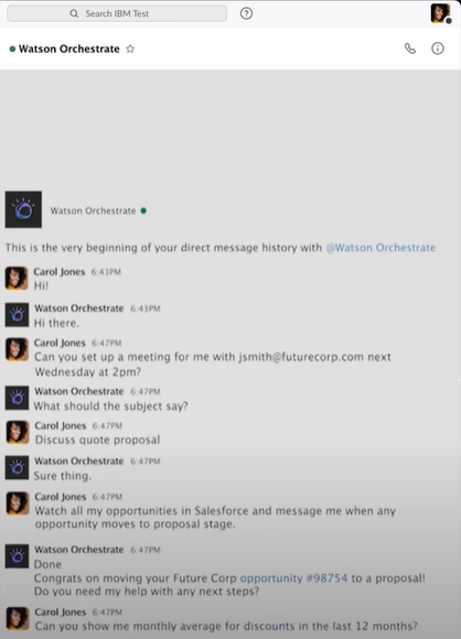 员工可以通过Digeys的对话式人工智能功能与之交流。如图4所示,员工可以使用Slack等工作场所通信工具,使数字工作者自动完成许多任务,如: