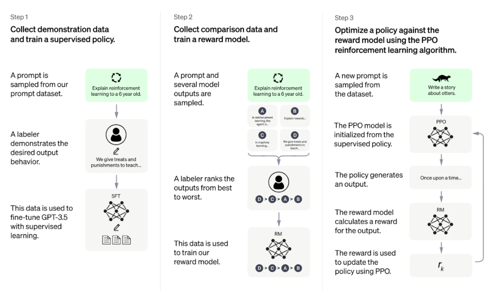 图2. ChatGPT的学习过程(Source: OpenAI)