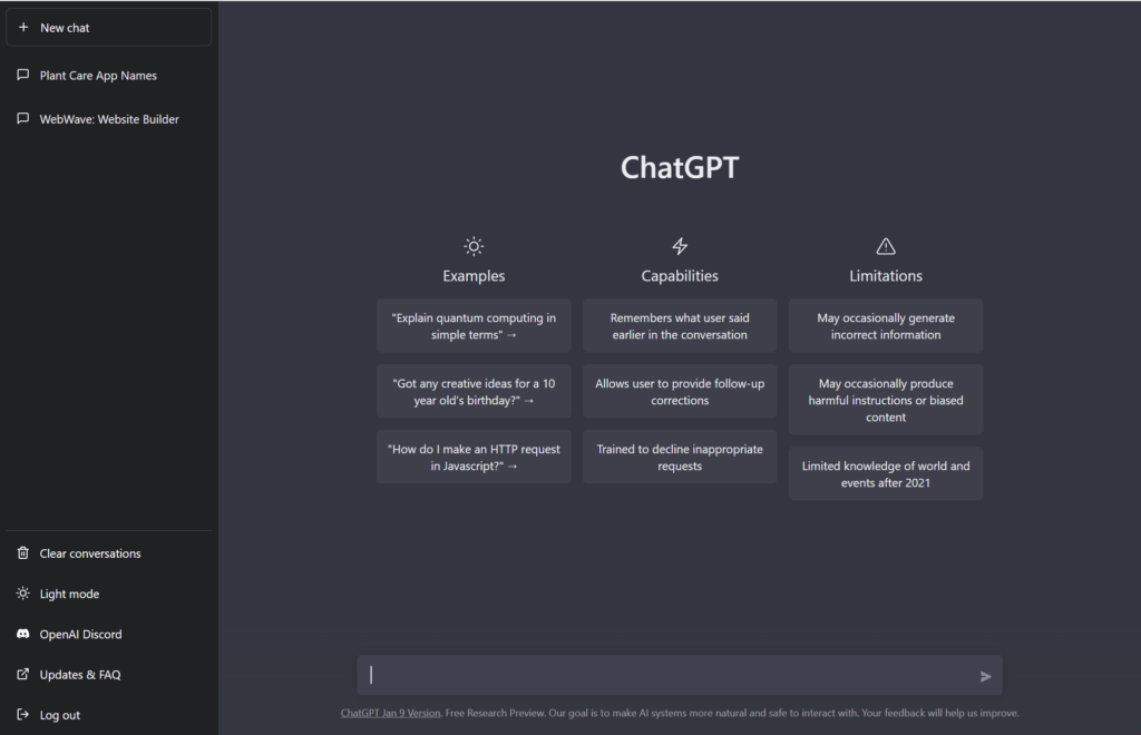 ChatGPT不需要太多的东西就可以开始。一旦你注册,你就可以和你的人工智能新朋友开始对话了。UI很简单,容易浏览。