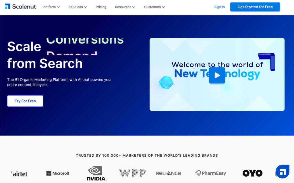 - Scalenut:这款全能的营销工具包括研究、创建、优化和营销文案等功能,帮助用户建立有效的内容管理战略。
