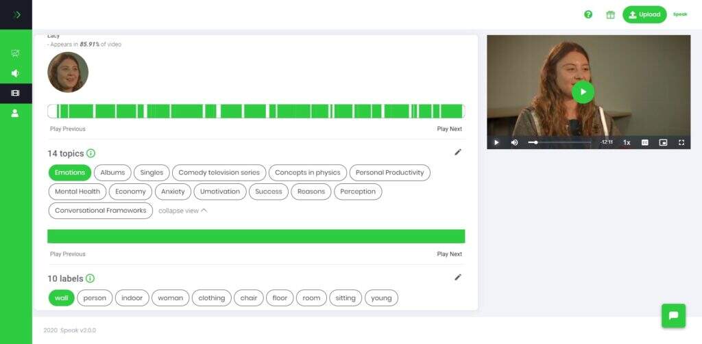 Speak还允许你生成仪表盘报告,并大规模地捕捉音频、视频和文本数据。该工具确保你不会丢失隐藏在通话、采访、录音和视频中的重要信息。人工智能引擎会自动转录并识别重要的关键词、主题和情感趋势。