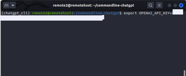 5. 现在,用下面的命令为这个API密钥创建一个环境变量。在Linux中,你可以使用 “export” 命令来创建环境变量。将 占位符替换为你在Linux终端使用ChatGPT时生成的实际API密钥。