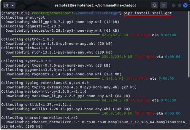 在完成了环境设置后,你现在可以继续在Linux中安装ChatGPT的命令行版本。如果你在虚拟环境中安装它,你需要省略-用户标志。现在,使用下面的命令在你的电脑上安装ShellGPT: