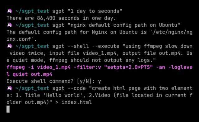 现在你已经安装了ShellGPT,你一定很想用它来完成各种任务。但在此之前,让我们看看它的语法和一些选项,我们可以用它们来使我们的输出变得有趣。由于ShellGPT的语法简单明了,使用它来完成多项任务很容易: