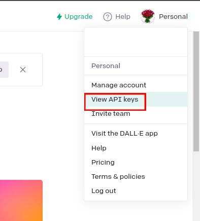 2. 接下来,点击右上角的个人资料图片,从下拉菜单中选择 “View API keys“。