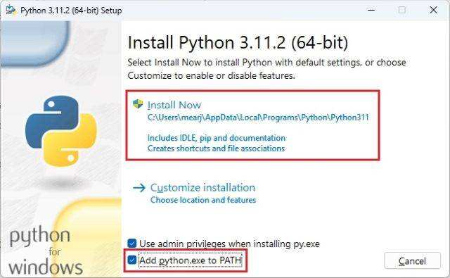 2. 接下来,运行安装文件,确保启用 “Add Python.exe to PATH” 的复选框。这是一个极其重要的步骤。之后,点击 “Install Now”,按照常规步骤安装Python。