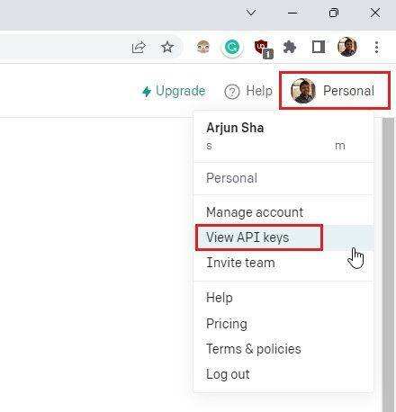 2. 接下来,在右上角点击你的个人资料,从下拉菜单中选择 “View API keys“。