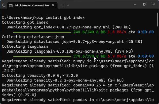 当你安装Python时,Pip会同时安装在你的系统上。所以让我们把它升级到最新版本。对于那些不了解的人来说,Pip是Python的软件包管理器。基本上,它让你从终端安装成千上万的Python库。通过Pip,我们可以安装OpenAI、gpt_index、gradio和PyPDF2库。下面是需要遵循的步骤。