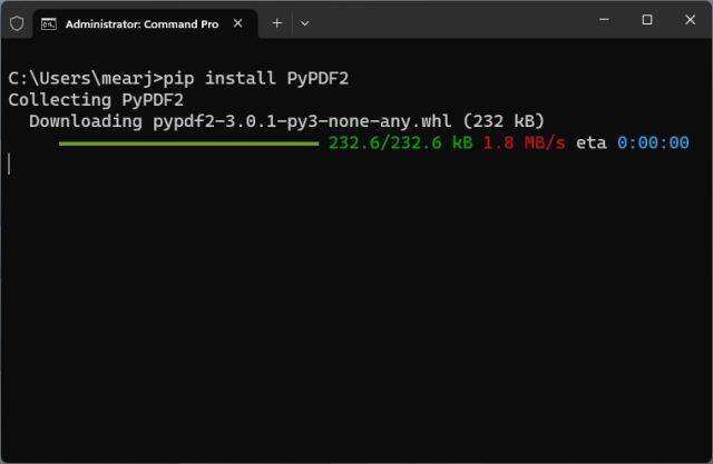 3. 之后,安装PyPDF2来解析PDF文件。如果你想把你的数据以PDF格式输入,这个库将帮助程序毫不费力地读取数据。