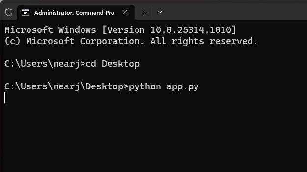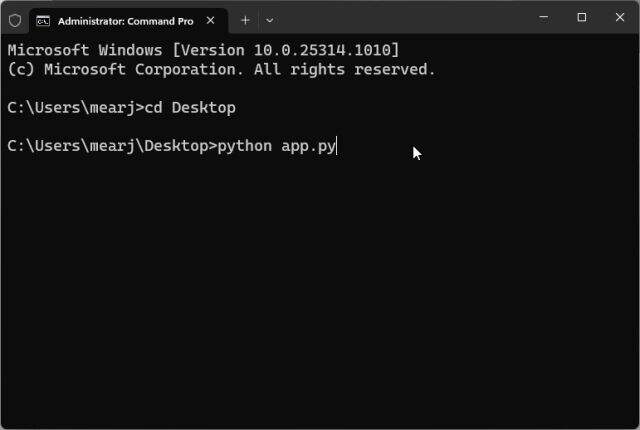 1. 首先,打开终端,运行下面的命令,移动到桌面。这是我保存 “docs” 文件夹和 “app.py” 文件的地方。如果你把这两个项目保存在其他位置,通过终端移动到那个位置。