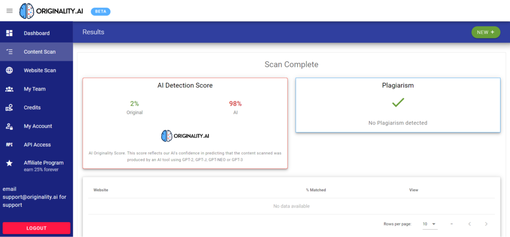 你会发现Originality.ai并没有检测到任何抄袭问题。这在未来可能会改变。