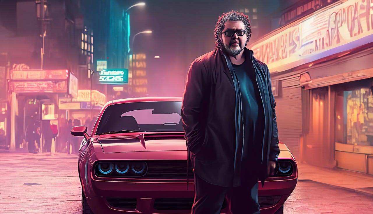 在我的 promotion 中,我想要一张我站在车前的图片。我开的是一辆红色的道奇挑战者,我想这张图放在我的个人简介页面上一定很酷。