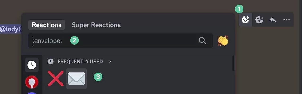 要获取seed ID,请单击要获取种子的图片右上方的半月形加号图标 (1)。然后在搜索框中输入 :envelope: (2)。然后点击信封 (3)。