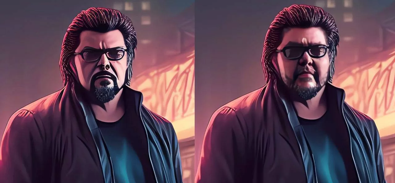 虽然左下角的图片非常糟糕,但右边的还不错。严格来说,它并不完全像我。但它确实捕捉到了与原始轮廓图相同的主题风格,足够接近,而且汽车看起来也不错。