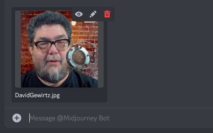 要这样做,双击 Discord 屏幕底部的加号图标(记住,Midjourney 是在 Discord 中运行的),选择你的图片,然后点击回车键。