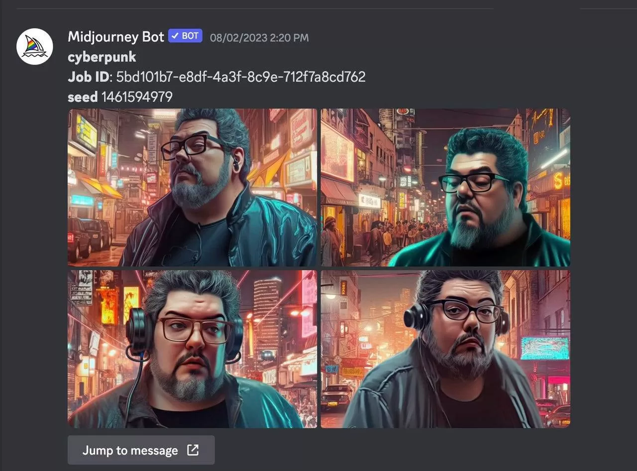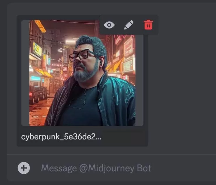 这种技术使用现有的照片作为图片提示的一部分,为 Midjourney 的创作提供一些指导。因为我希望我的主要相册宣传图片看起来像我自己,所以我给 Midjourney 提供了一张起始图片。