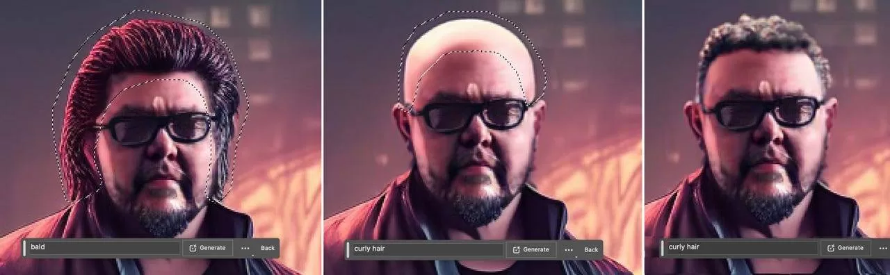 最后,我需要修复头发。为此,我打开了 Adobe Photoshop 测试版,并使用了生成填充技术。Midjourney 非常适合创建整个图像。Photoshop 的 “Generative Fill” 功能非常适合在现有图像的基础上添加新的图像,并让所有图像无缝地弯曲在一起。