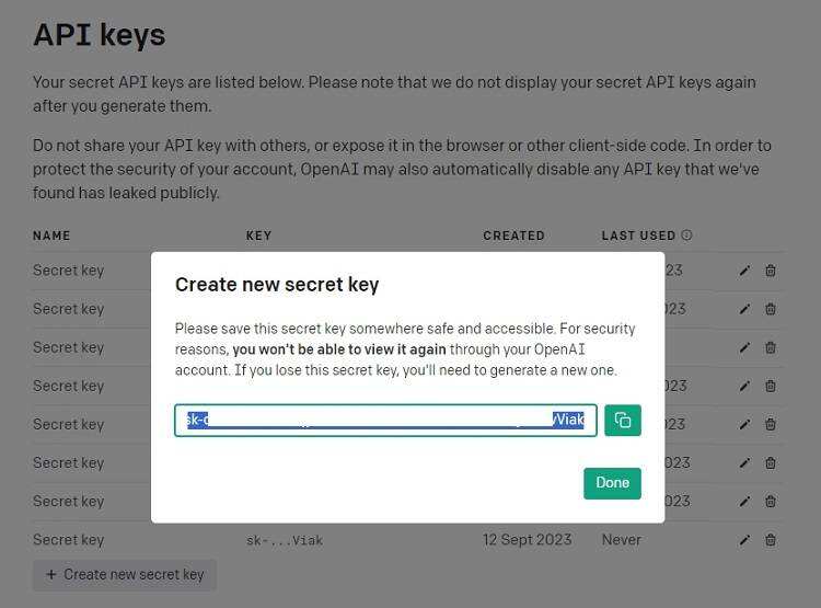 2. 我使用的是 OpenAI GPT-4 模型,但如果您无法访问其 API,也可以选择 GPT-3.5。现在,从 OpenAI 网站获取一个 API 密钥。点击 “Create new secret key” 并复制密匙。