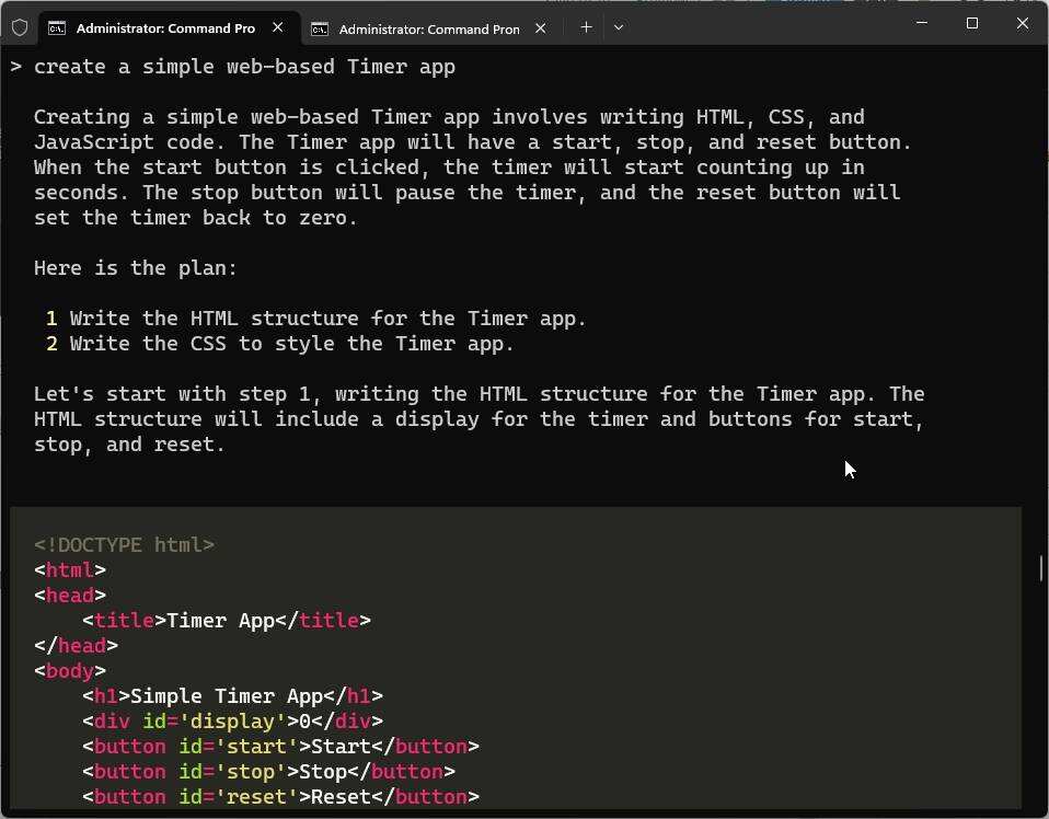 2. 接下来,我要求它创建一个基于网络的简单计时器应用程序。它的确很快就创建了一个应用程序。这很可能成为利用人工智能的力量赚钱的好方法。
