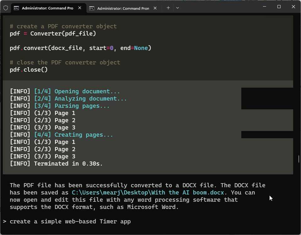 4. 我还要求它将 PDF 文件转换为 DOCX 文件,结果一切顺利。