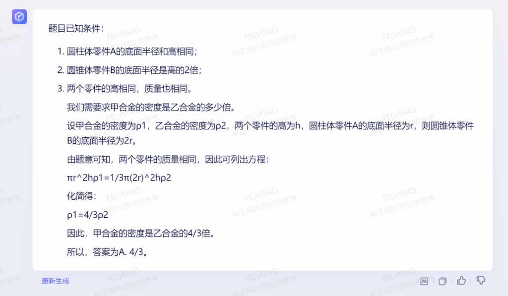 该题目也是在知乎上找来的,题目点评为:单个步骤不难,连续推理有一定难度。我们一起看看两大平台的连续推理能力如何。