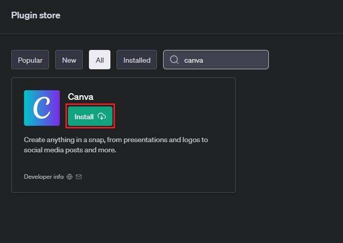 4. 在这里搜索 “Canva“,然后在 ChatGPT 中安装插件。