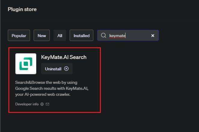 1. 使用 KeyMate.AI 搜索插件在 ChatGPT 上浏览网页(付费)