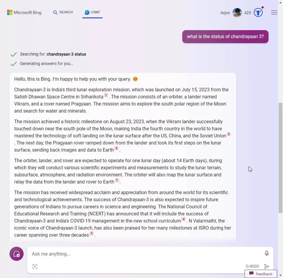 我们都知道,微软的必应聊天软件采用了 OpenAI 的 GPT-4 模型。值得庆幸的是,必应聊天可以不受任何限制地访问互联网。此外,必应聊天的结果来源于必应搜索引擎,这与大多数由谷歌搜索 API 支持的插件和扩展不同。