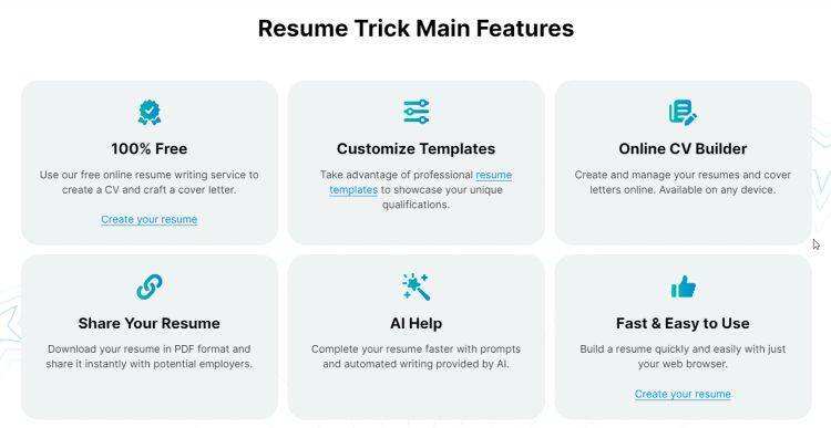 总的来说,就易用性而言,Resume Trick 是我迄今为止用过的最好的人工智能简历制作工具之一。任何人都可以制作简历或求职信,无需任何文档格式或文字处理方面的专业知识。
