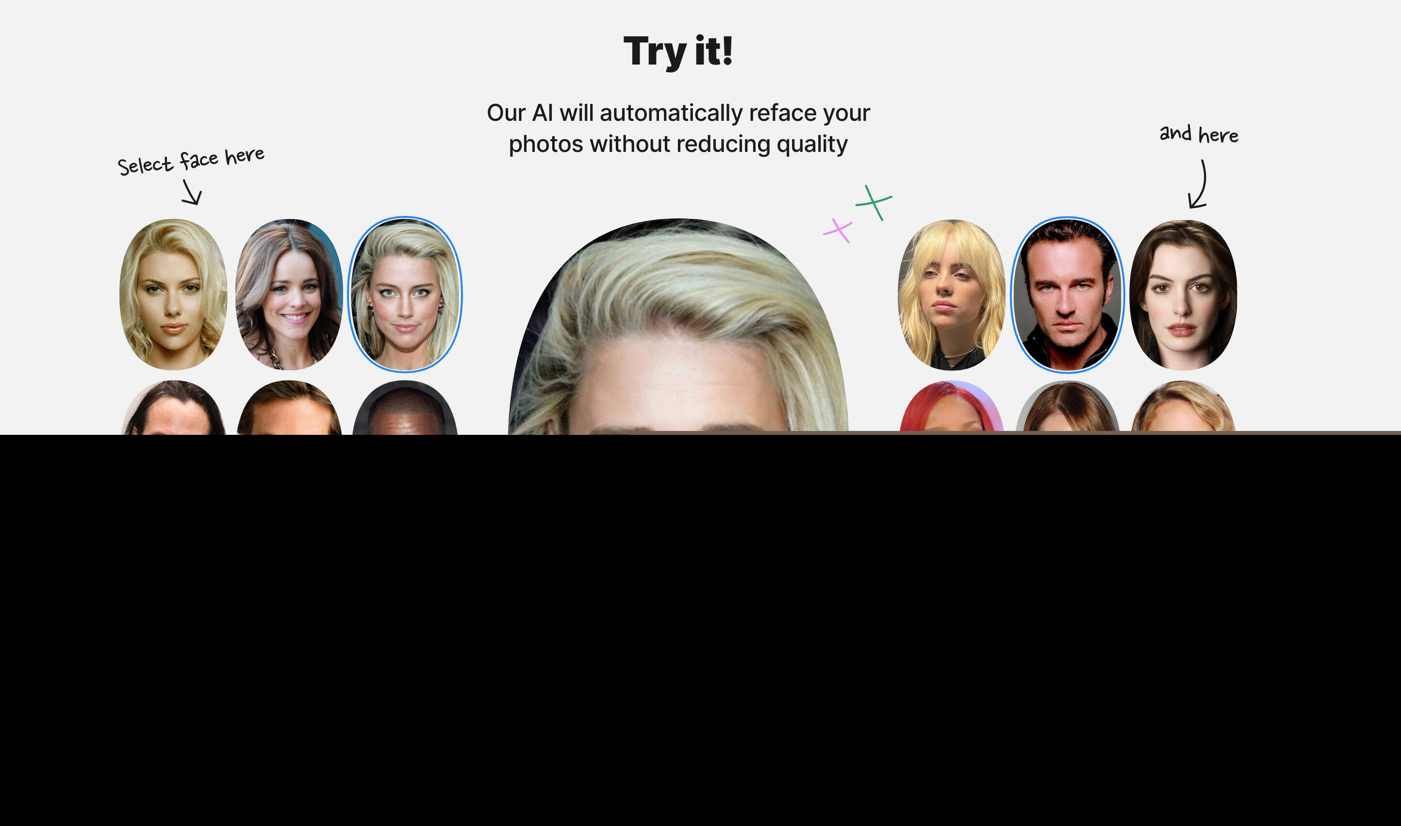 该工具采用人工智能算法识别上传图片中的人脸,并根据你的喜好将其替换为其他人脸。你既可以选择使用自己的照片,也可以从他们的综合图库中选择人脸替换。