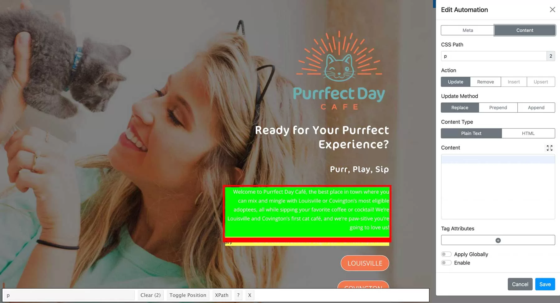 Alli AI 的实时编辑器可让您直接在前端编辑内容,从而改变您的搜索引擎优化方法。虽然一些 WordPress 主题(如 Divi 和 Elementor)已经做到了这一点,但对于使用其他 CMS 平台或静态 HTML 网站的用户来说,这可能会改变游戏规则。通过实时编辑器,您可以查看页面搜索引擎优化建议,并即时做出更改。此外,Alli 的搜索引擎优化自动化流程也是养家糊口的好帮手。经过初步扫描后,Alli 会生成改进搜索引擎优化的新建议,然后让您点击按钮即可实施。或者,你也可以单独选择你想执行的建议,而忽略你不想执行的建议。