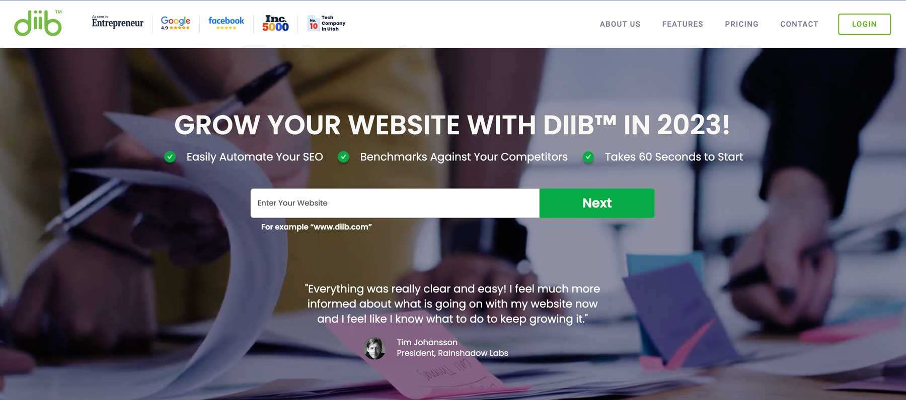 如果你想要一款经济实惠、功能丰富的人工智能搜索引擎优化工具,不妨试试 Diib。Diib 有大量的洞察力、提高搜索引擎排名的指导步骤和简单的界面,对于有预算意识、想提高搜索引擎优化水平的人来说,Diib 是一个极好的选择。