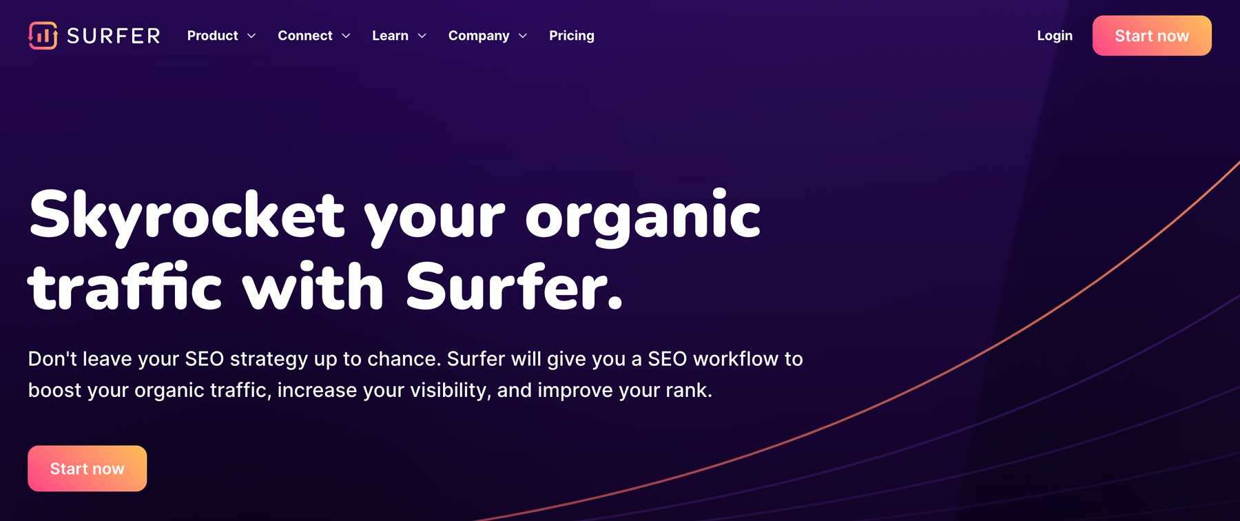 我们的下一款人工智能搜索引擎优化工具是 Surfer SEO。它使用自然语言处理 (NLP) 模型来帮助你优化页面搜索引擎优化。此外,它还能与 WordPress 和其他内容管理系统平台无缝集成,让您在撰写内容时就能轻松优化搜索引擎优化内容。它的工作原理是分析竞争对手的关键字和内容,通过开源 NLP 进行运算,然后建议您在内容中使用这些关键字的频率。它还能帮助我们了解一篇文章应该有多少字、标题、段落和图片。根据他们的建议,Surfer SEO 承诺提高您在 SERP 中的排名。