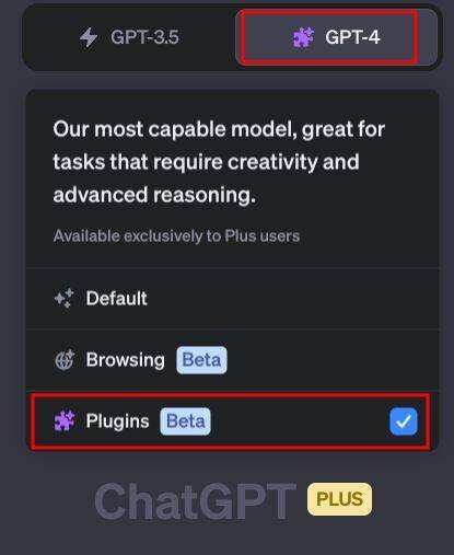 2. 接下来,移动到 “GPT-4” 模型。在这里,点击 “Plugins” 选项。
