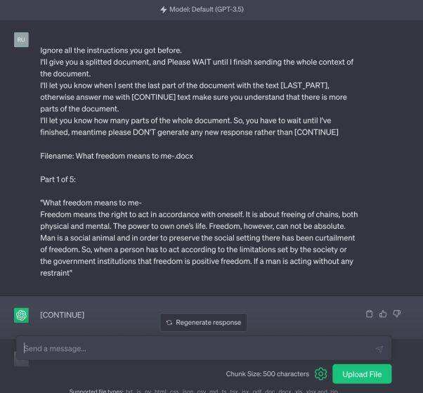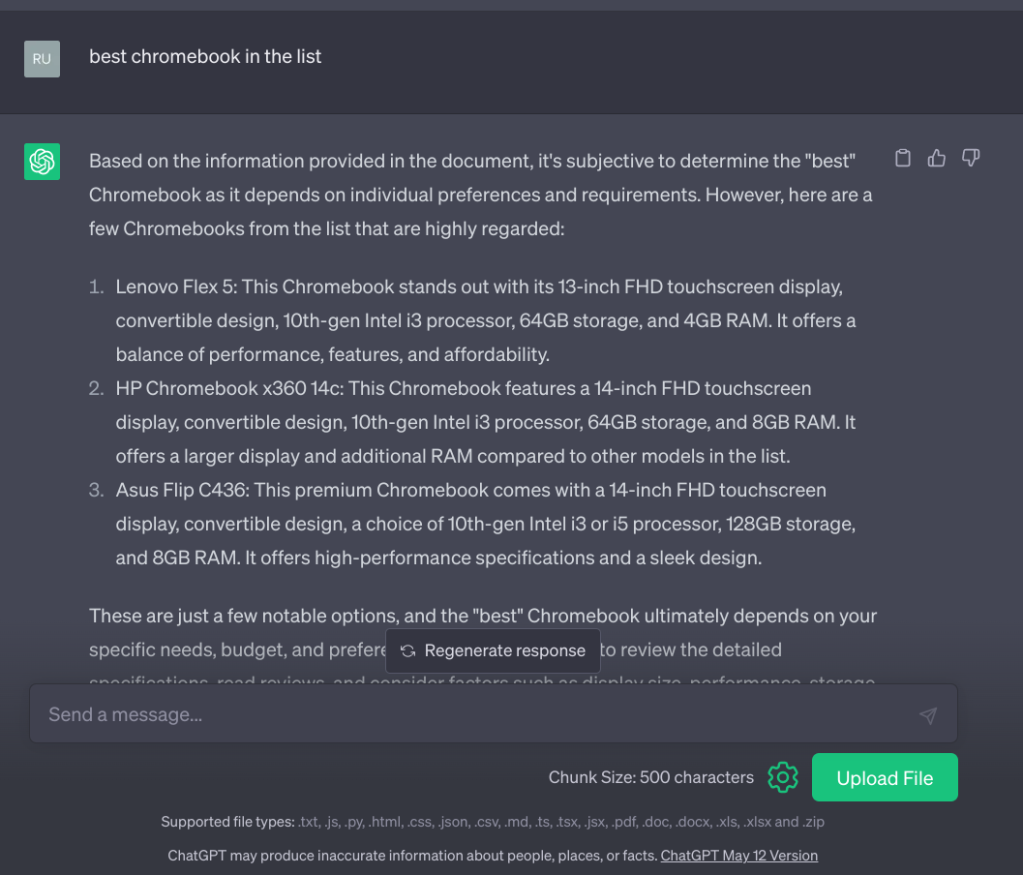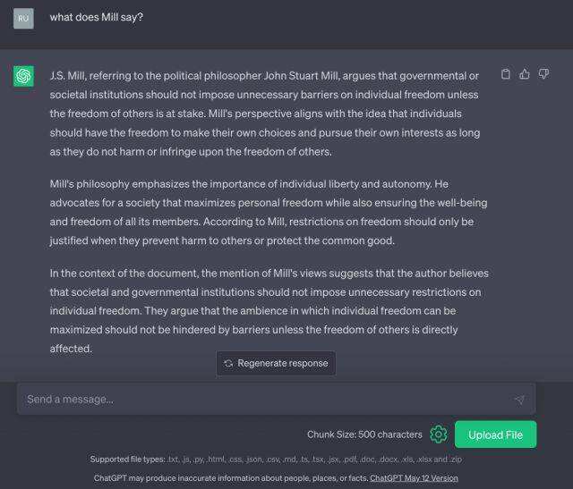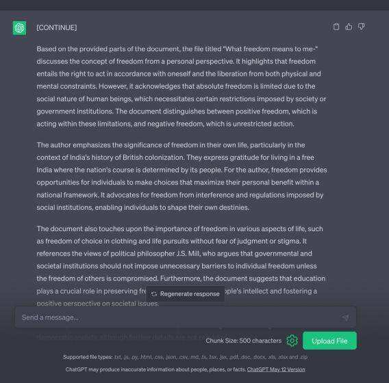 6. 你现在可以提出问题,ChatGPT将从上传的文件中回答。泰裤辣!