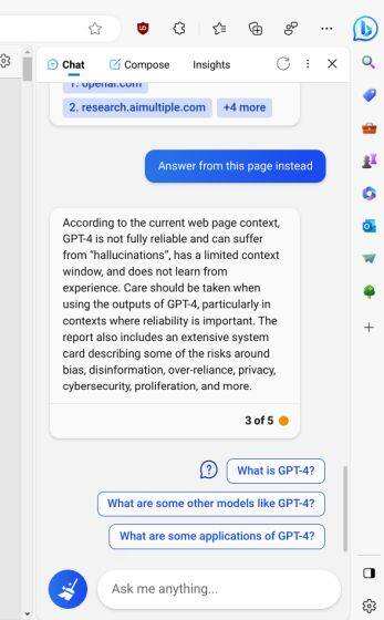 3. 你可以提出进一步的问题,它将继续从文件本身回答。如果它从网上回答,你也可以点击 “Answer from this page instead”。