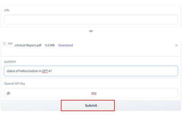4. 之后,添加PDF文件的URL或上传本地PDF文件到ChatGPT。现在,请提出您的问题并点击这里的 “Submit”。