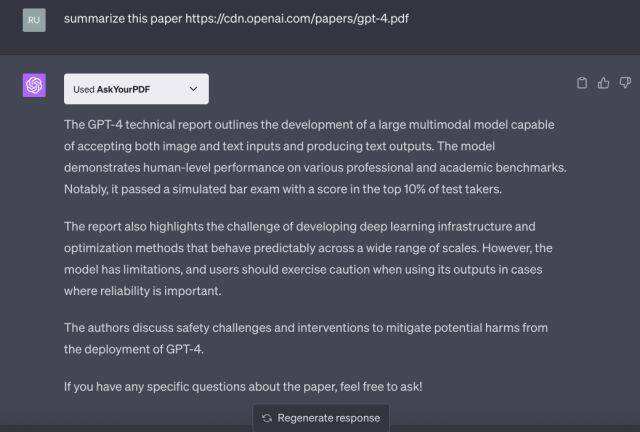 5. 一段时间后,人工智能聊天机器人将生成一份文件的摘要。