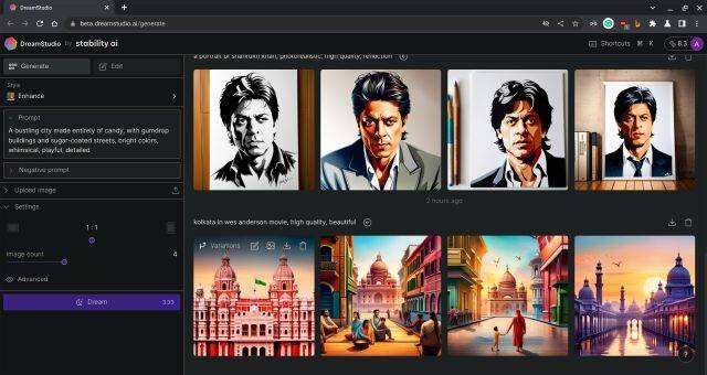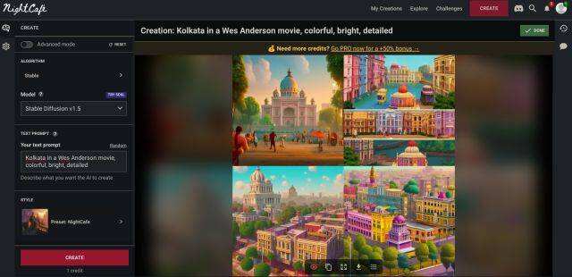 然后,还有Stable Diffusion和DALL-E 2模型用于下一代图像合成。说到这里,该网站并非完全免费使用。你在注册时只能得到3个免费点数,你必须付费或通过社会活动赚取点数才能使用其他高级模型。简单地说,NightCafe是另一项服务,你可以尝试比较各种图像模型。