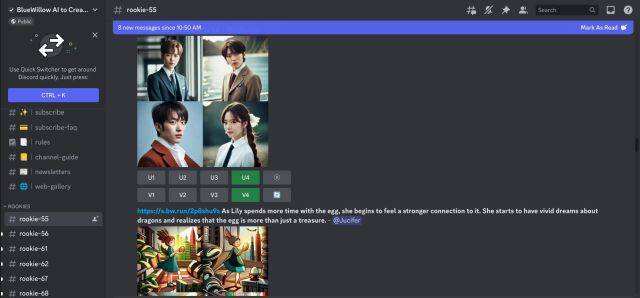 Blue Willow是Midjourney的一个有趣的替代方案,在其Discord服务器上已经积累了超过3亿的用户。它完全免费使用,靠用户捐赠运行。你可以加入Blue Willow Discord服务器,并在那里输入你的提示来生成图像。人们正在使用Blue Willow来创造标志、漫画中的人物、数字艺术品、风景、图形概念等等。