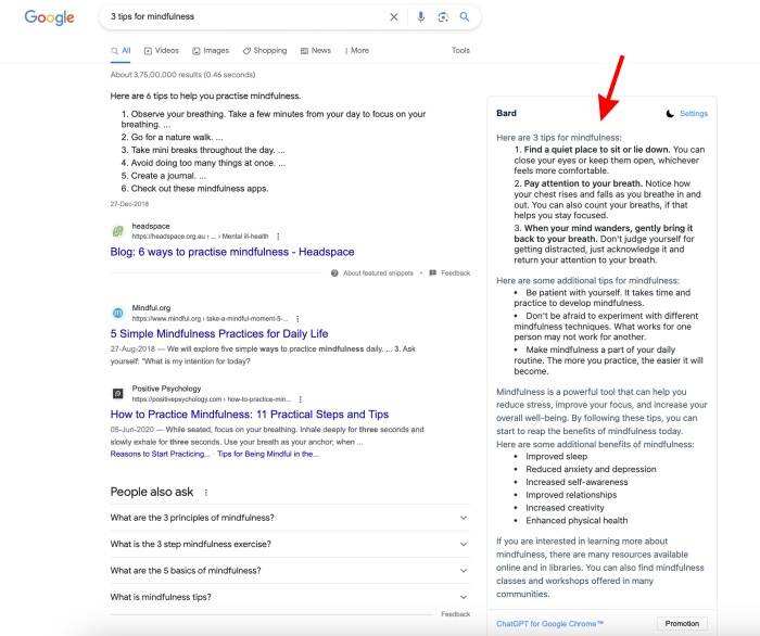 - 一旦你看到结果,看看右边的侧栏,看看Google Bard的回复。