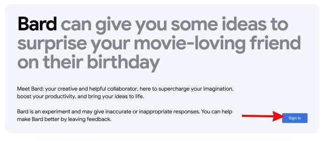 虽然该扩展现在已经激活,但如果没有一个可以访问Bard的账户,它就无法工作。因此,你需要用你的谷歌账户登录巴德。下面是如何进行的: