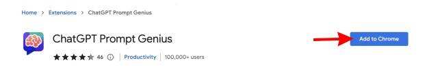 下载ChatGPT Prompt Genius扩展(Get)并点击 “添加到Chrome”。