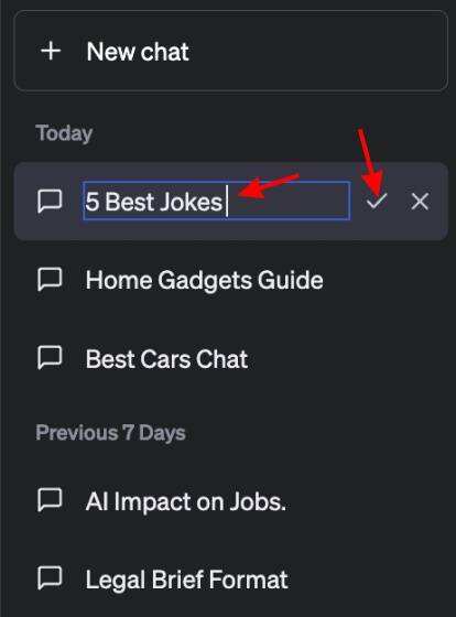 如果您希望在未来重温一个重要的ChatGPT对话,我们建议您重新命名它。为此,点击标题旁边的 “铅笔” 图标,重新命名您的聊天。您可以根据自己的话题和喜好来重新命名对话。一旦完成,这个ChatGPT对话就会以这个名字保存在云端,并一直保持可用。