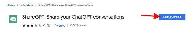 通过访问Chrome网络商店并点击 “添加到Chrome“,下载ShareGPT扩展(获取)。